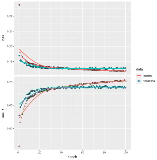 Following the CANN approach of [5,6], Listing 4, we train a neural network and, in addition to that, we feed the input layer directly into the output layer, i.e., the sigmoid layer. This is a combined model that has, as an input, the features learned by the neural network as well as the original features. The intuition is that, in this way, we can combine more complex features which can improve the model but also lead to overfitting, and thus we also have the original features on which we learn a more basic model such as logistic regression.