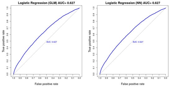 - The combined multilayer perceptron NN–logistic regression model. Following the CANN approach of [5,6], the logistic regression can be interpreted as a skip connection which is added to the neural network directly connecting the input with the output layer. The logistic regression predicts the probability of an outcome related to a specific classification task and the neural network learns nonlinear transformations and interactions between variables from the data that the logistic regression cannot capture.