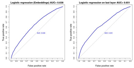 Using these embeddings, instead of the embeddings trained by our architecture, as described in the previous section, we again trained a logistic regression and a neural network model. As we see, the results are essentially identical. This is not really surprising as, in both cases the embeddings capture the information about the relationships between different objects in each category.