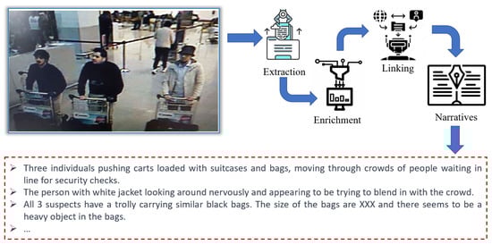 By extracting information about these objects, an AI system can identify potential threats and generate a detailed story that provides context and guidance for security personnel. By enriching these data and linking information items to external knowledge sources, such as social and historical police data, the AI system can generate a detailed story that provides context for the situation. The system can highlight potential warning signs, identify potential threats, and provide guidance on how to respond.