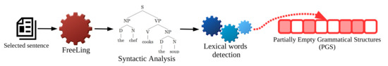 - The first step consists of generating Partially empty Grammatical Structures (PGSs) corresponding to the words of a chosen sentence. For this purpose, we implemented a procedure based on the canned text method, which is efficient for parsing in ATG tasks [29].