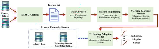 - Data Curation: In the first stage, the ETASC analysis is performed to gather performance indicators for each country from multiple data sources, which include patent databases, scientific publications, and technological news sources. The data is then preprocessed to ensure consistency and completeness, after which missing values are imputed using statistical techniques such as mean imputation or regression imputation.