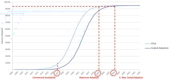 Much research has been conducted to explore the behavior of technology adoption by firms. In one of the models known as the Technology Acceptance Model (TAM), ‘Perceived Usefulness’ and ‘Perceived Ease of Use’ of the technology are considered the main factors in technology adoption. These two variables were found to consistently explain 40% of the variance in an individual’s intention to use and implement a technology [14]. In Roger’s Innovation Diffusion Theory (IDT) [11], the most well-known of the models, the focus is on how new technology will be adopted by members of a population through communication by human-interpersonal networks. Based on this model, the demand for innovation is a function of time, and the cumulative form of innovation diffusion among the population versus time follows an S-shaped curve, with an early minority leading to a tipping point of mass take-up, followed by a plateau. Using Rogers’s terminology, the technology adopters fall into five different categories named Innovators (2.5%), Early adopters (13.5%), which lead the trend, followed by Early majority (34%), then Late majority (34%), and, finally, Laggards (16%) [11].