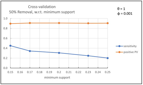 Cross-validation results (with respect to remove percentage, minimum support = 0.15).
