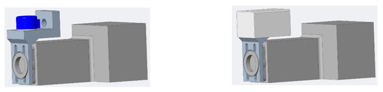 CAD layout of the sensor integration (sensor in blue on the left, sensor with protecting housing on the right).