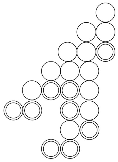 Given a base diagram, we selected a subset of vertices and called them the primary vertices. The activation diagram is a base diagram B and a subset S of the primary vertices of . A secondary vertex with the coordinates is a vertex in the base diagram in which each one of and is either a primary vertex or a secondary vertex. We associated the activation graph (i.e., the underlying colored graph in which the primary and secondary vertices are black and the remaining vertices are white) to each activation diagram. To simplify the interpretation of theactivation diagrams, we only drew vertices which were either primary or secondary and avoided the others in the base diagram (see Figure 3).