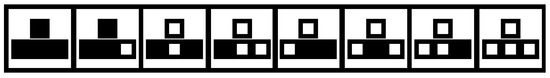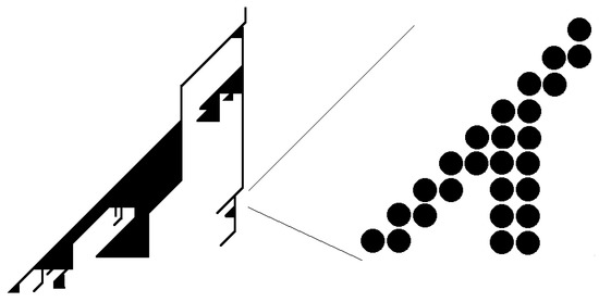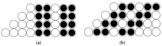 We examine the white spaces as shown in Figure 18. They correspond to the roots of Figure 17. According to Proposition 6, the sequences corresponding to Figure 18a are