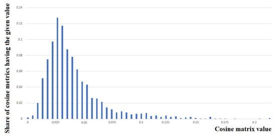 - “Statistical distributions of similarity metrics—sem” algorithm. Its difference from the “Lexico-semantic bonds and statistical distributions of similarity metrics” algorithm lies in the fact that the algorithm’s input is the matrix of the cosine metric values, which is derived from the document’s semantic presentation only.