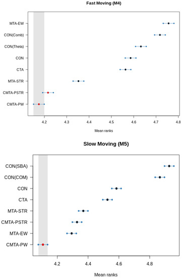 Aggregating time series data to a certain lower frequency can become beneficial both for slow- and fast-moving series [32,33,34]. With regard to fast-moving data, Athanasopoulos et al. [35] aggregated monthly and quarterly series from the tourism industry and observed that aggregated yearly forecasts were more accurate than forecasts derived from higher frequency data. Similarly, when analysing slow-moving inventory data, Nikolopoulos et al. [8] found that forecasts produced from lower frequency data resulted in better accuracy on average.