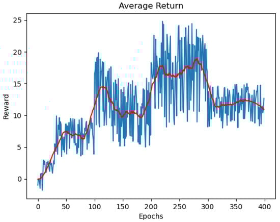 The average return of the DDPG is shown in Figure 11. Identical to the average episode length, the DDPG does not have a good result in this metric as well. Although there is a slight increment in the average reward after a few hundred epochs of training, the result is still very unstable and seems not to be converged. We have tried to alter the hyperparameters (e.g., layer configurations, activation function, CNN kernels, etc.) but none of them show a better result for a DDPG. With all the above results, we can compare and draw some conclusions about the performance of the DQN and DDPG in this dynamic object-tracking task.