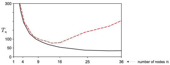 It turns out that with an increase in the number n of processes involved in calculations, the computation time is proportional to , and the time to exchange messages between processes is proportional to .