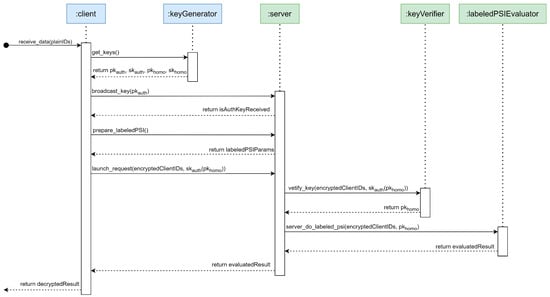 This Section presents an improved version of the pre-described Labeled-PSI System in which the system’s security level has been enhanced by combining Digital Signature and Homomorphic Encryption Schemes. Figure 2 illustrates the full protocol of Enhanced Labeled-PSI from a high-level perspective. A more in-depth sequence diagram is attached as supplementary material to ease the procedure-checking addressed later and for readers interested in an in-depth sequence diagram. The chart is big in size because it presents the global view and the detailed interactions among all modules of our system. The specific precautions and procedures can be understood as follows: