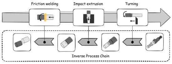 For this purpose, this paper proposes a manufacturing stage model which, starting from a predefined manufacturing process chain and a component design, derives the geometry models of the manufacturing stages required for production and simultaneously performs a restriction check. The idea of an inverse process chain representation is pursued (see Figure 2), whereby the process chain is viewed against the actual process direction.