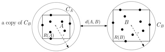 Definition 1. A pair of sets A and B are said to be well separated (a dumbbell) if , for any given separation constant and .