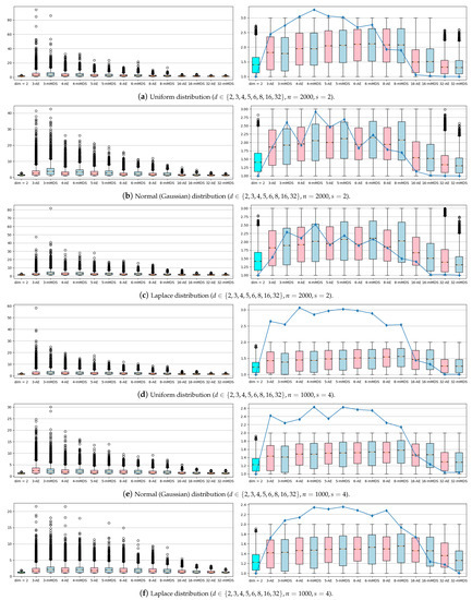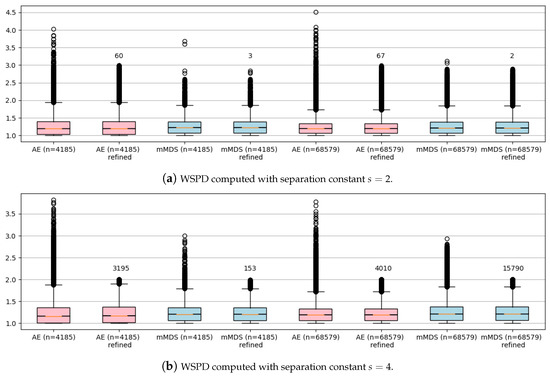 , NN-WSPD was used. On the boxplots in the left column, NN-WSPD was applied but without the refine step (Algorithm 1). From this one can see that many of the reconstructed dumbbells can violate the quality given by Equation (