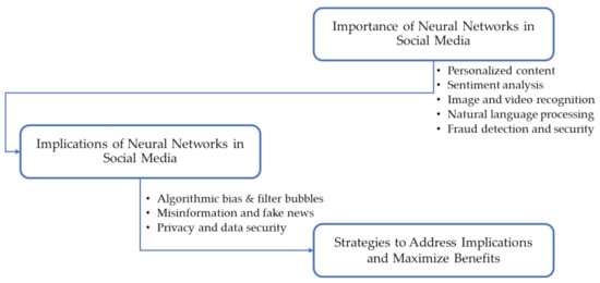 Social media networks have become increasingly dependent on neural networks. They enable personalized content recommendations based on user preferences, sentiment analysis, image and video recognition, natural language processing (NLP), fraud detection and security, and NLP of images and videos. Social media platforms can utilize neural networks to improve user engagement [], content curation [], and platform security []. However, there are repercussions associated with the use of neural networks in social media networks. Algorithmic bias can contribute to discriminatory content recommendations and practices. As social media platforms need to manage and safeguard sensitive user information, privacy and data security are concerns. Personalization can result in filter bubbles and polarization, and misinformation and false news can undermine the credibility of the information shared on these platforms.