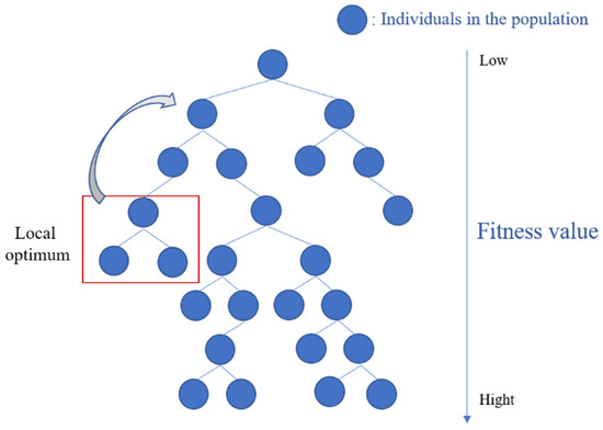 Generally, the greedy selection operator is excellent. However, when the individual is in a locally optimal state, if the greedy selection operator continues to be used, a better vector from the trial and parent vectors will be selected to survive to the next generation. Since the parent vector is a locally optimal value, the newly generated trial vector is likely to continue further in the locally optimal direction. When an individual falls into a local optimal value, it is characterized by stagnation and is difficult to evolve to a better solution [30]. Literature [31] also proposed that greedy selection is difficult to help individuals to jump out of the local optimal value, so it is necessary to develop a new selection operator to help individuals jump out of the local optimal value.