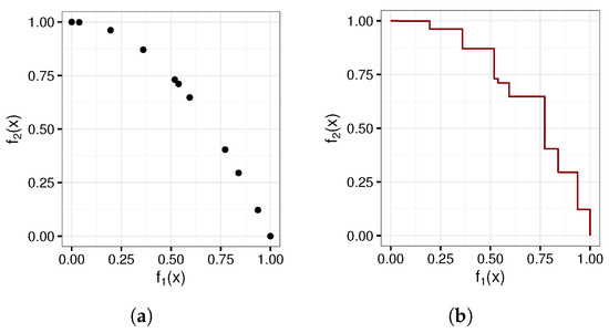 - Fonseca, C.M.; Guerreiro, A.P.; López-Ibáñez, M.; Paquete, L. On the Computation of the Empirical Attainment Function. In Proceedings of the Evolutionary Multi-Criterion Optimization: 6th International Conference, EMO 2011, Ouro Preto, Brazil, 5–8 April 2011; pp. 106–120. [Google Scholar] [CrossRef]