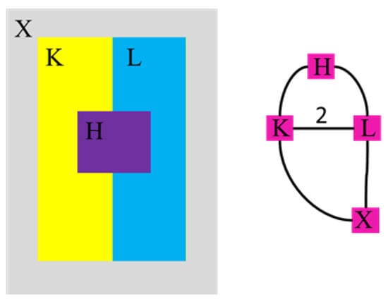 Figure 1 on the left. Although this image contains only four regions, it does present two special topological relations among them that are not accurately represented by a simple graph: