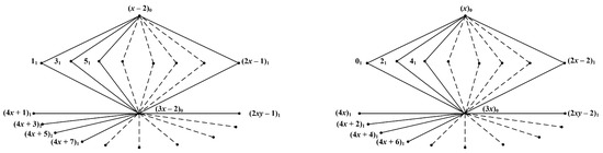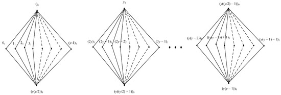 In Theorem 2, we construct the symmetric starter of an of by using a general symmetric vector. There are two cases depending on the value of For more information, see Figure 6 and Figure 7.