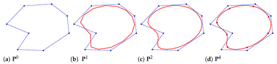 - Dyn, N.; Levin, D.; Gregory, J.A. A 4-point interpolatory subdivision scheme for curve design. Comput. Aided Geom. Des. 1987, 4, 257–268. [Google Scholar] [CrossRef]