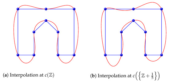- Plonka, G. An efficient algorithm for periodic Hermite spline interpolation with shifted nodes. Numer. Algorithms 1993, 5, 51–62. [Google Scholar] [CrossRef]
