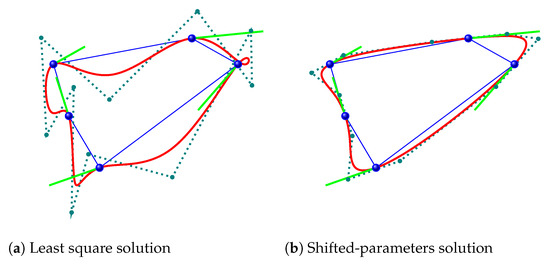 In order to evaluate the quality of each curve, proper fairness measures could be used [46,47], penalizing artifacts such as loops (see Figure 5a).