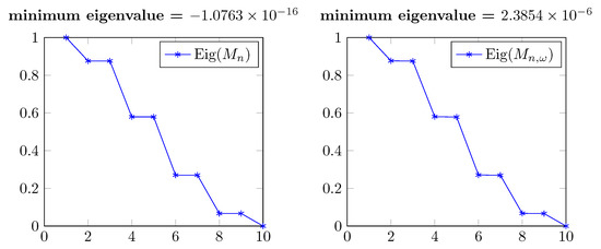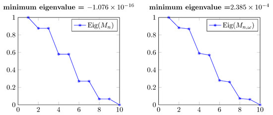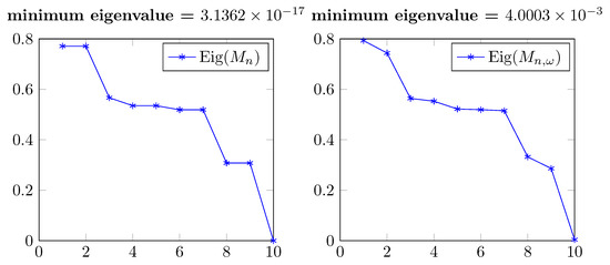 Eigenvalues of and (real part) in Figure 11.