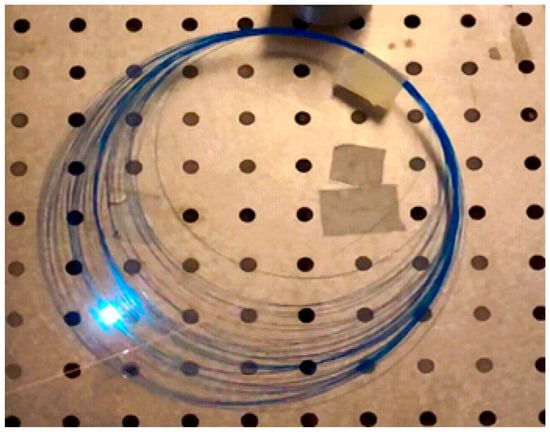 The dimensions of the internal quasiperiodic structure of an optical fiber obtained during the optical discharge passage depend on the radiation power, its mode composition, and the fiber geometry [14,15]. As mentioned above, these structures can be used as a sensing element for a fiber optic sensor based on a Fabry–Perot interferometer or a fiber optic radiation scatterer [16,17]. For different sensors and optical radiation scatterers, there are different requirements for the geometrical parameters of the internal structure [18,19].