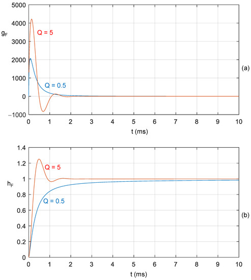Figure 1 shows the plots of the corresponding impulse and step responses in MATLAB. For illustration, the responses of the IOS (α = 1) were added. Since the same results were obtained in Micro-Cap, they were not added in Figure 1.