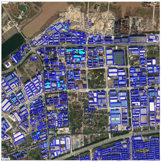 Figure 1 shows a schematic diagram of the key region. The light blue points represent the potential leaking sources and tracking these sources is the main task of this issue. The small yellow ‘+’s represent the sensors distributed in the region. Different from some previous studies, the distribution of the sensors is tailored to the needs of urban residents’ living quality rather than to making monitoring data fit more easily. The buildings circled by a dark blue bounding box are taken into consideration during the modeling procedure, including their widths, lengths, and heights.