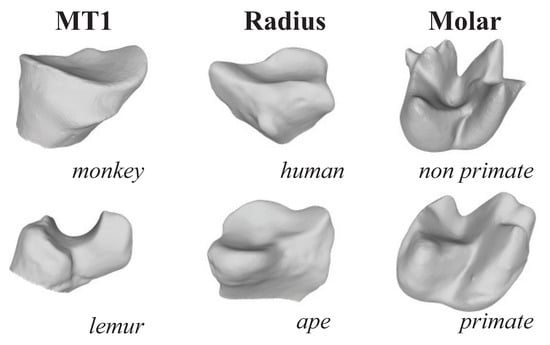 - Boyer, D.; Lipman, Y.; StClair, E.; Puente, J.; Patel, B.; Funkhouser, T.; Jernvall, J.; Daubechies, I. Algorithms to automatically quantify the geometric similarity of anatomical surface. Proc. Natl. Acad. Sci. USA 2011, 108, 18221–18226. [Google Scholar] [CrossRef] [PubMed]