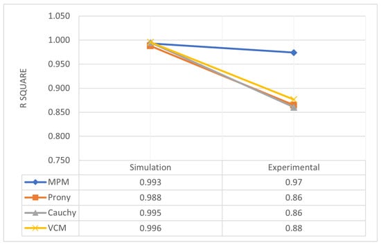 Now, the comparison starts with the accuracy of each method, i.e., the fidelity of the reconstruction. The CNRs calculated from the input signal are the base for the linear regression that leads to the signal reconstruction, so the CNRs calculated are reliable only if this reconstructed signal has a coefficient (from 0 to 1) close or equal to 1. The average for these measurements is presented in Figure 18, where MPM outperforms in both simulation and experimental scenarios.