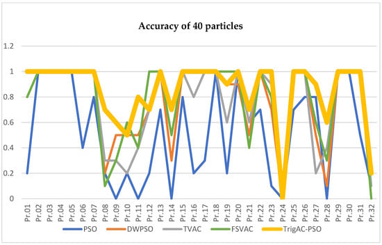 Accuracy of PSO, DWPSO, TVAC, TrigAC-PSO and FSVAC for 40 particles.
