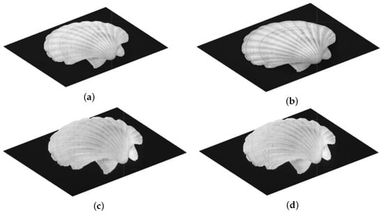 The relatively large distance between the camera and the shell, coupled with a lens with a focal length of 85 mm, produces a reasonable approximation of an orthographic projection. The light source is virtually at an infinite distance from the object. Nevertheless, the Hayakawa procedure fails when it is applied to the whole dataset, as in this case the matrix G in (7) is not positive definite. This is probably due to the fact that the shell surface does not reflect the light according to Lambert’s law.
