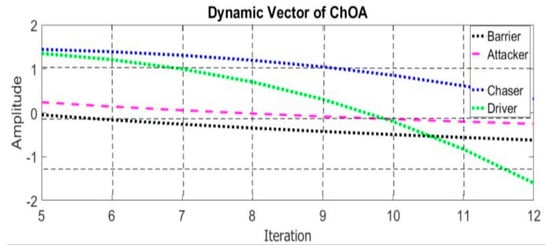 Variation of dynamic coefficients vector with different groups of ChOA.