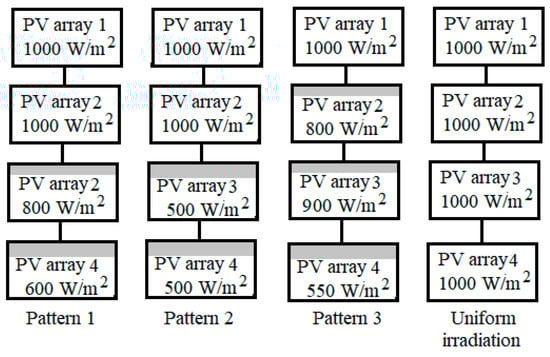 Different irradiation patterns of PV system under shading conditions.