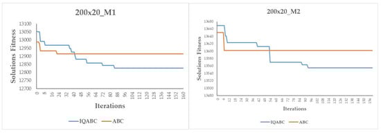 The existing literature can be placed into three main streams according to the considered effect, namely the learning effect, the deteriorating effect, and finally, the combined effects. Reference [48] proposed a tabu search algorithm to solve the single-machine scheduling problem with a time-dependent learning effect. Ref. [49] developed four metaheuristics, namely the genetic algorithm (GA), simulated annealing, ABC, and iterated greedy algorithms to solve a two-stage, three-machine assembly scheduling problem with a position-dependent learning effect. On the other hand, Ref. [41] proposed an ABC algorithm to solve the flexible flowshop scheduling problem with a step deteriorating effect, while [50] proposed three metaheuristics including dynamic differential evolution, the simulated annealing algorithm, and the cloud-theory-based simulated annealing algorithm, to solve the two-stage assembly scheduling problem under a time-dependent deteriorating effect. In practical settings, combined effects (learning and deteriorating) are also considered. In this regard, we can quote the work of [51], which developed a GA to solve parallel machine scheduling problems under the effects of position-dependent learning and time-dependent deteriorating effects.