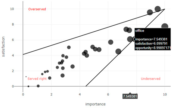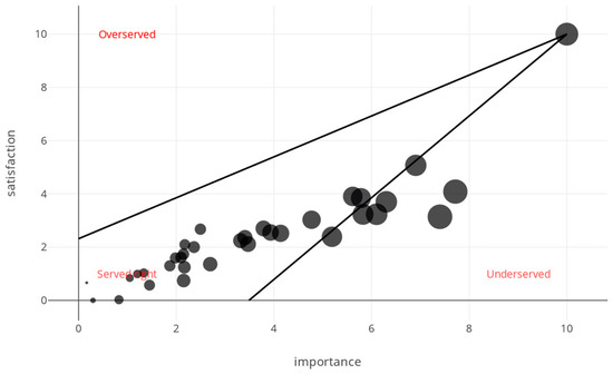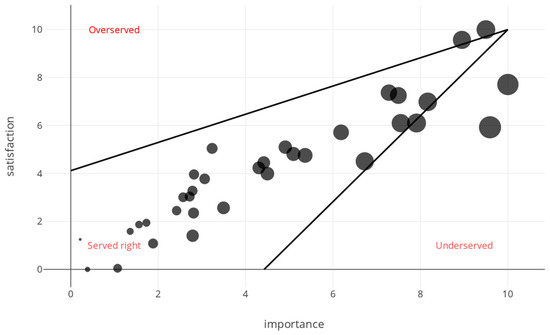 Each topic is placed along the satisfaction and importance axes to create the opportunity chart that is visualized as an example in Figure 2.