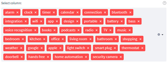For instance, within the “smart home” category, the “light switch” topic highlights features enabling users to control their smart-home lighting via Alexa. However, when using the term “lights” for classification, sentences referring to the light ring atop the Echo Dot, which is relevant to the design, are also classified under it. Another issue arises when pertinent sentences are not detected at all. Within the same “smart home” category, the topic meant to describe temperature-control features exemplifies this. Using “temperature” as a classifier inadequately classifies sentences, while “thermostat” performs effectively. The classifier’s name in zero-shot classification significantly affects the resulting sentences. If a topic should correlate to a specific product, its name should explicitly denote it. For instance, the “TV” topic encompasses all television-related sentences, spanning Amazon’s Fire TV, controlling Apple TV, or voice recognition with active TV audio. Such delineation is necessary when the TV is a principal product feature, warranting its topic group. Our study categorized “TV” under “media,” with product distinctions clarified in the summary.