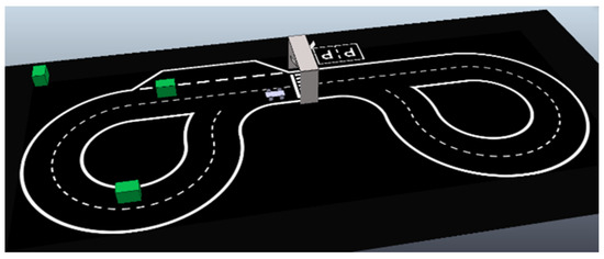 As can be seen, the use of neural network models for autonomous driving is not new, and in the case of camera-only systems, model training can be achieved by using a simulator in order to build the image dataset. The Car Learning to Act (CARLA) platform [12] was created to provide developers with support for the development, training, and validation of autonomous systems for urban scenarios. Jang et al. [13] used this platform for dataset generation. The images created by the simulator are realistic and can be used to simulate real-life camera images without the constraint of having to drive a car around. Therefore, a dataset can be easily created with cars, people, obstacles, etc., in motion such the images are not just assorted stills but a sequence of events. Tools have been developed for automatic labelling of the generated images for traffic lights and signs, vehicles, and pedestrians [14] using the CARLA platform. Dataset generation using simulators is common as well [15], as it provides data collection in a faster and cheaper way. For autonomous driving, there are open-access datasets such as Waymo [16], the Leddar PixSet [17] that includes both camera images and Lidar data, and the Udacity dataset [18], among others, none of which are adapted to the specifications of the present project. The necessary specifications are related to the Portuguese Open competition, and due to its specificities (size and track shape, special traffic signs, obstacles, etc.) these open-access datasets do not provide the needed data for training. Therefore, it was necessary to use a simulator to generate these specific details for the intended dataset along with automatic labelling for steering.