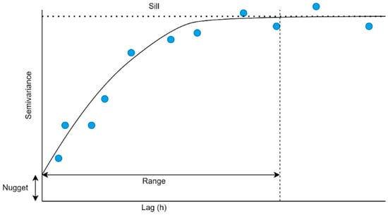 Regardless of the model chosen, all semivariogram models contain three parameters: the nugget, sill, and range. The nugget is the amount of semivariance at a lag distance of 0, typically due to measurement error. In comparison, the sill is the point at which semivariance plateaus, beyond which observations are no longer considered spatially correlated. Lastly, the range is the lag distance where the sill is reached. In other words, it is the maximum distance at which spatial autocorrelation is present. A stereotypical semivariogram is illustrated in Figure 5.