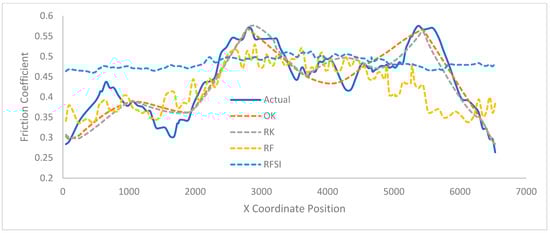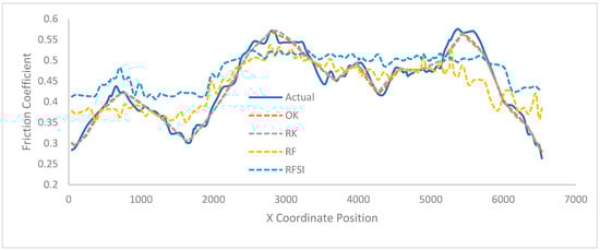 - Firstly, we developed an interpolator to convert point friction values into continuous values. In order to identify the most accurate interpolators, six interpolators were evaluated using datasets with increasing distance between measurements (from 0.1 to 1 km): ordinary kriging (OK), regression kriging (OK), RandomForest (RF), the RandomForest spatial interpolator (RFSI), and hybrid models (RFOK and RFSIOK). The results show that OK had the lowest error and was the least affected by increased separation distance.