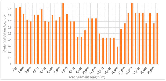 Model validation accuracy at various road segment lengths.
