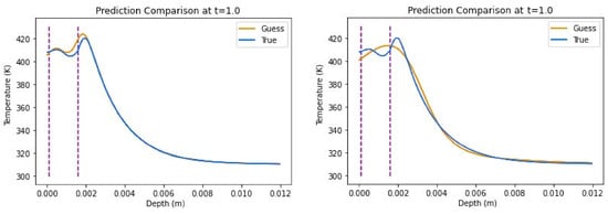 The three-layer skin experiment yielded the most accurate results from the models, where the all-Tanh model, utilizing the S&T method, outperformed the others. This is especially evident when comparing true vs. predicted thermal profiles. In Figure 9, the all-Tanh model closely fit the shape and magnitude of the curves around the dermis layer (layer 2) where other models had difficulty predicting such as the hybrid combination also found in Figure 9.