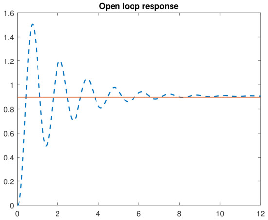 The controller gains are kept constant for all four controllers, except for PIDD and FOPID, which use fractional parameters obtained through Oustaloup approximation. The fractional parameters are selected through trial and error. The Oustaloup approximation’s frequency range and order are and 5, respectively. The general block diagram of the considered plants is shown in Figure 5. From the figure, the transfer function of a closed-loop block diagram is computed as follows: