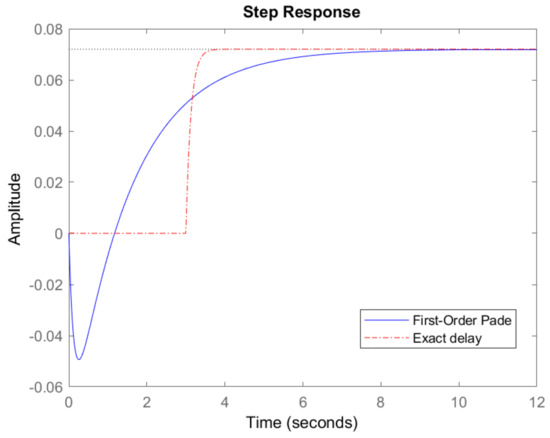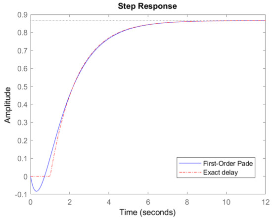 As the zero located at moves to the left side away from the origin, i.e., increases, the step response will start to equate to the original step response as . On the other hand, when the zero moves closer to the origin of the complex plane, i.e., decreases, the effect of the derivative term becomes more apparent, causing higher overshoot and lower rise time and response time [17]. This controller design improves the phase margin, steady-state accuracy, and plant stability [9,23,28].