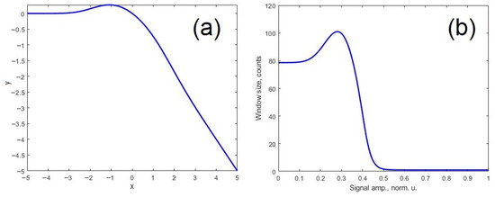 where is the signal level value in the current point and is the “threshold” signal level value. = 0.776, = 0.55585, = 2.3, = 9.8, and = 5.8—these are empirically selected constants.