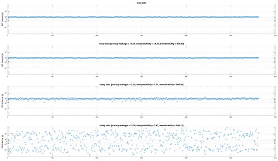 As a visualization example, Figure 7 displays the noise-added source domain heart rate interval data for different values of information theoretic measures.