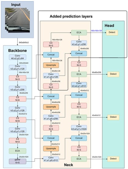 - The Efficient Channel Attention module (ECA-Net) was initially incorporated into the model’s backbone and neck network to enhance the model’s accuracy.